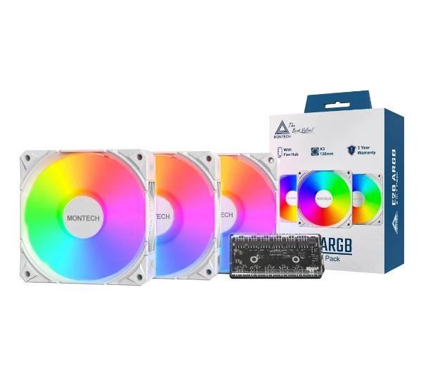 Набір із трьох вентиляторів для корпусу 120MM GF120 V2 ARGB PWM 3I1(W) MONTECH